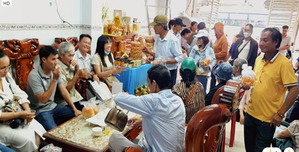 Khách hàng tới tham quan và mua sắm nấm Đông trùng Hạ thảo tại gia đình chị Thương tại P Long Khánh.
