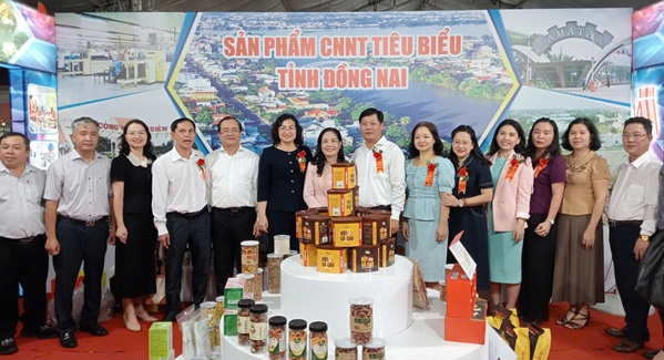 Thứ trưởng Bộ Công Thương – Bà Phan Thị Thắng và các lãnh đạo Bộ, Sở Ban ngành chụp hình Lưu niệm tại gian hàng trưng bày sản phâm CNTTB của tỉnh Đồng Nai tham gia HC
