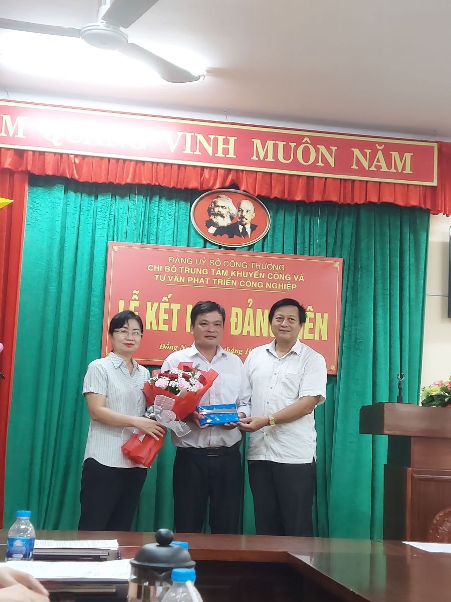 Thay mặt Chi bộ, đồng chí Nguyễn Ngọc Diệu - Bí thư Chi bộ Trung tâm Khuyến công và Tư vấn Phát triển Công nghiệp đã trao Quyết định kết nạp Đảng và chúc mừng đồng chí Lê Hoài Phương sau thời gian phấn đấu, rèn luyện đã được vinh dự đứng trong hàng ngũ của Đảng Cộng sản Việt Nam.